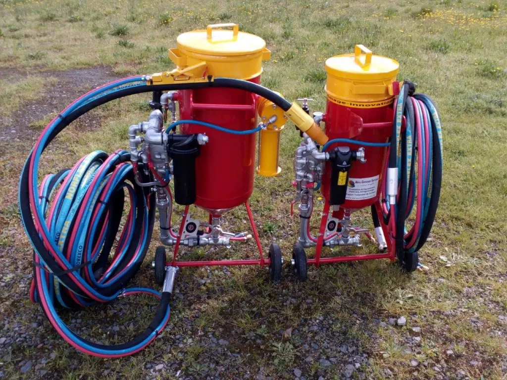 Sa mise en œuvre nécessite l’utilisation d’une aérogommeuse équipée d’un système de jet d’air comprimés pour projeter un abrasif naturel sur la surface à traiter.