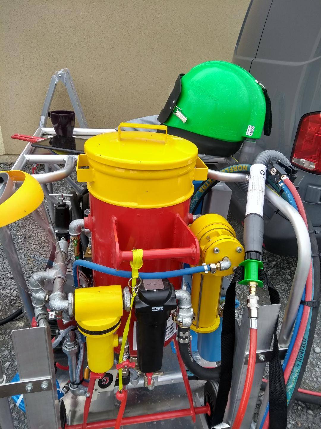 18 Notre concept skid aérogommage" un équipement complet posé sur les chariot que nous fabriquons aussi qui est bien abouti et qui vous rendra service dans la productivité immédiate tout le temps et vous évitera les gestes répétitifs