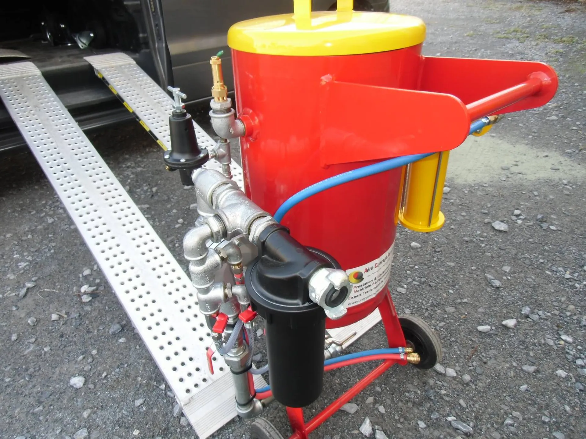 mais un doseur pneumatique sur une cuve c'est une consommation d'abrasif en + sans contrôle du débit, car c'est la pression du manomètre qui gère automatiquement le doseur