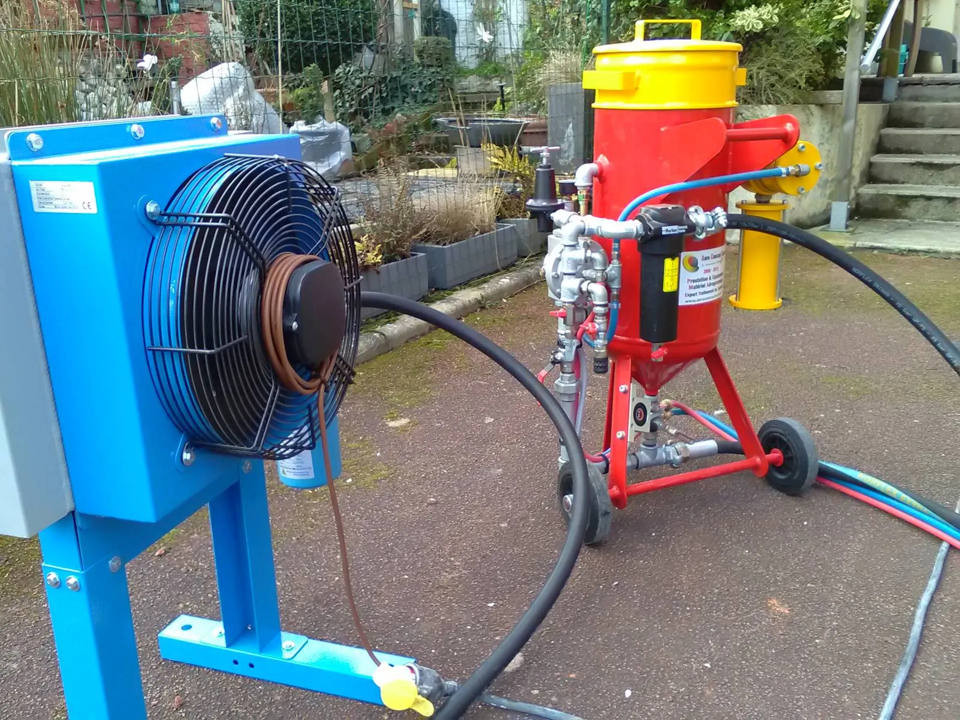 tuyauterie de sablage pouvant aller jusqu'à 25 mètres, "une tuyauterie indépendante qui s'enlève en 10 secondes avec coupleurs rapides".