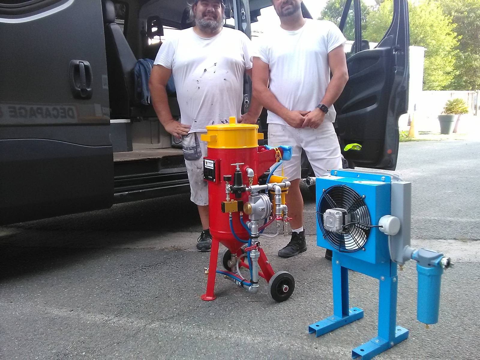 traitement de surface pour tous décapages : bois, pierre, métal et PVC sans être obligé d'utiliser systématiquement de gros compresseurs de chantier.