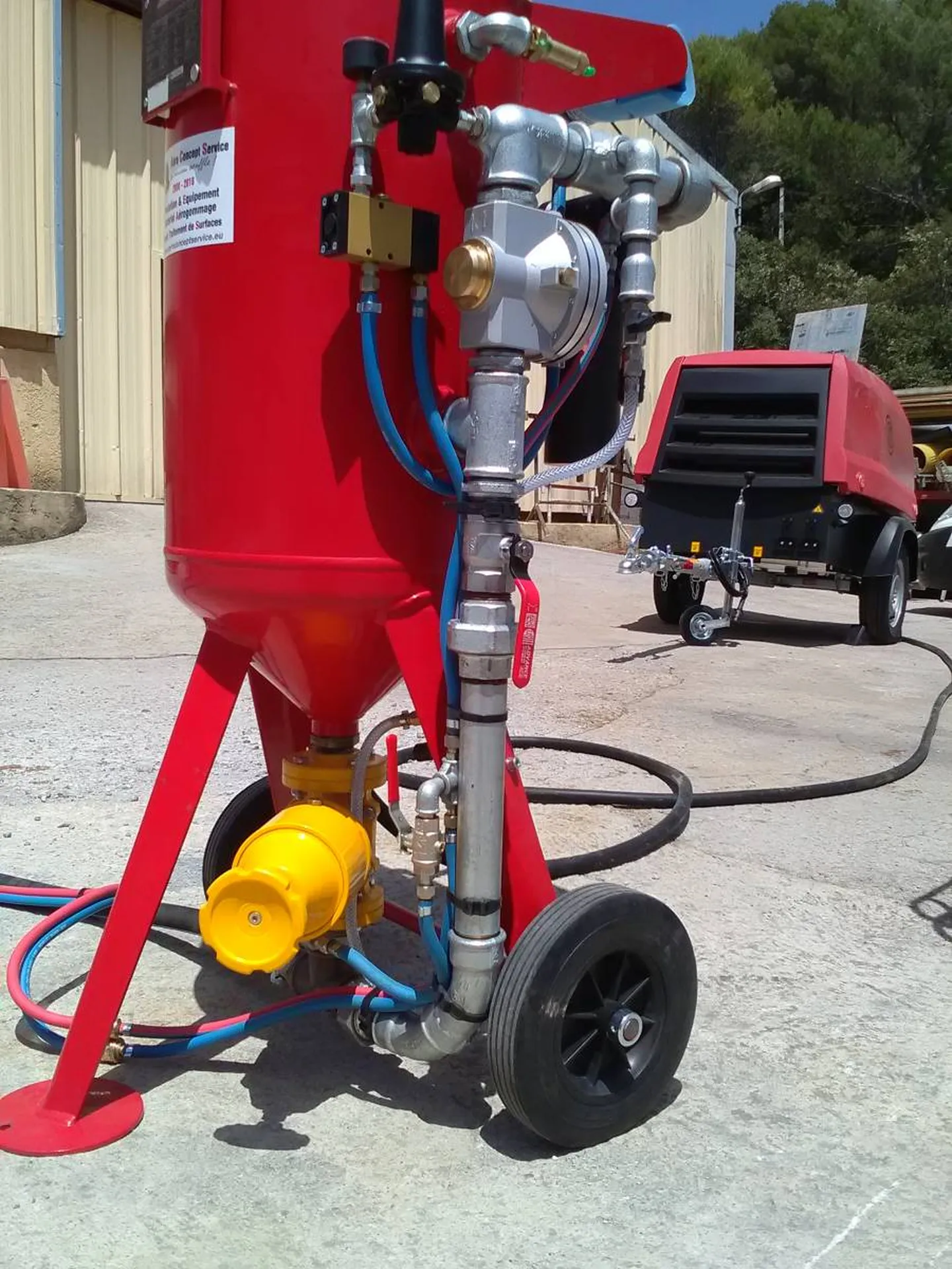 Toute notre gamme Aérogommeuse de 15 - 35 L est prévue et créée pour se poser sur un chariot libératoire que nous fabriquons en Bretagne nord