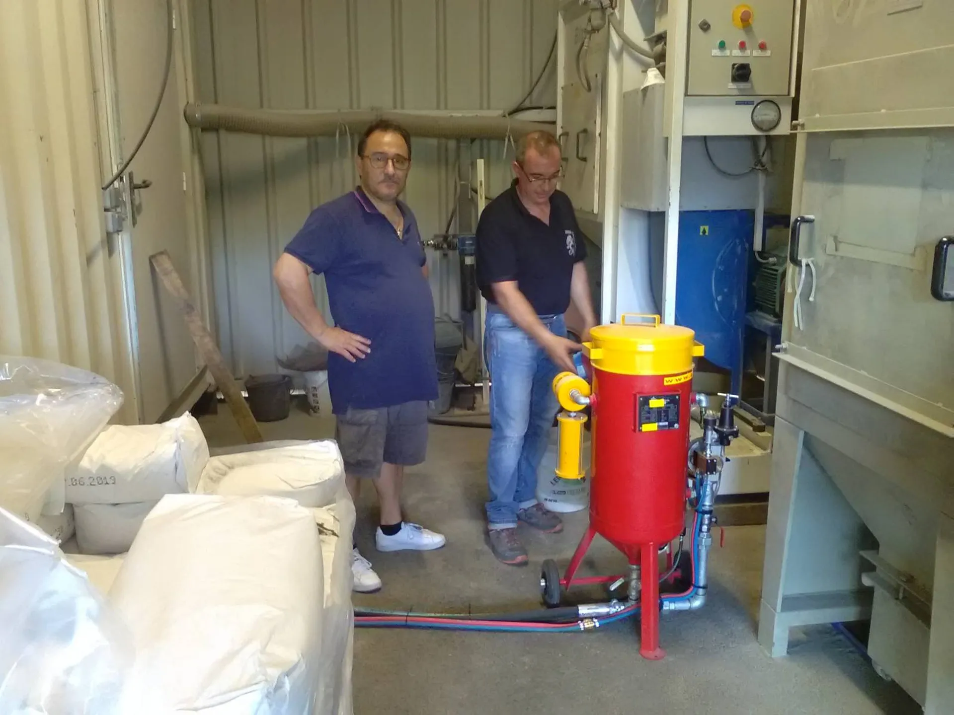 Chaque aérogommeuse a une cuve pouvant contenir 25 35 ou 50 kg d'abrasif