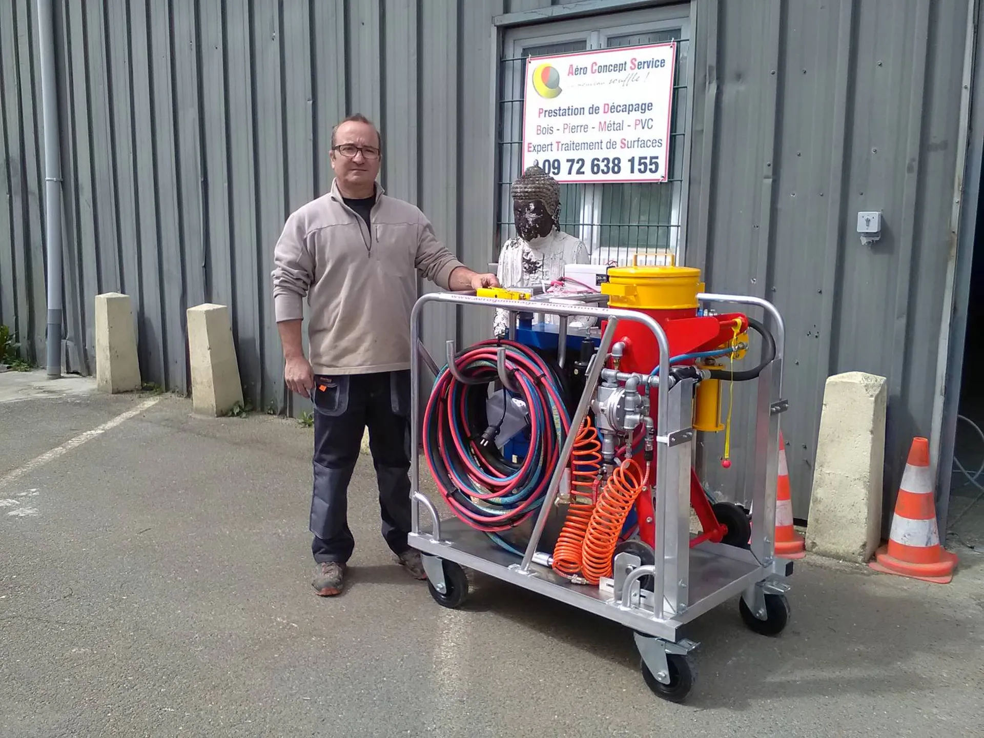 AERO CONCEPT SERVICE SAS depuis 14 ans au service du décapage Chantier et fabricant d'aérogommeuses et distributeur de compresseurs ainsi que d'abrasifs.