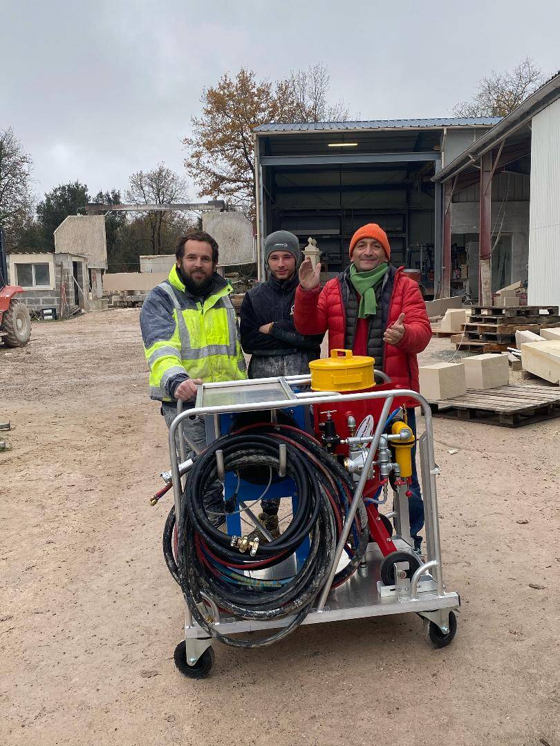 Le plus facile à transporter c’est de la poser sur un skid aérogommage que nous proposons si vous cherchez le concept aérogommage abouti