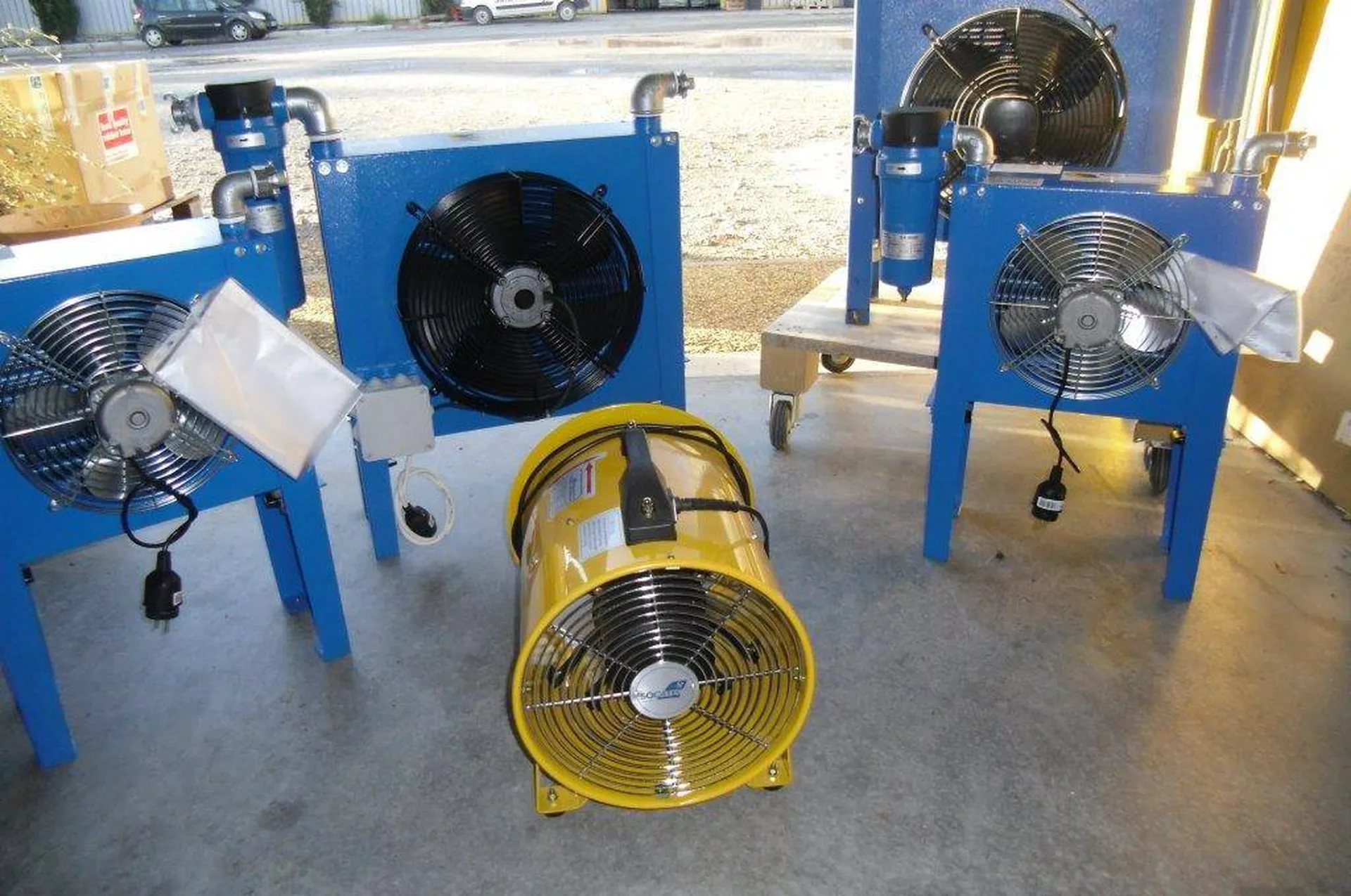 nous proposons une gamme de réfrigérant capacité traitement air de Observez notre aéroréfrigérant pneumatique sur cette photo Regardez ses tuyaux cuivre pour le passage air Regardez son moteur son ergonomie qui nous permet d'écrire QUE c'est du robuste Un très bon matériel de chantier avec des atouts pneumatique hors pair Regardez son montage avec un décanteur cyclonique regardez les pales de l'hélice C'est notre savoir faire et réflexion et ce depuis 10 ans