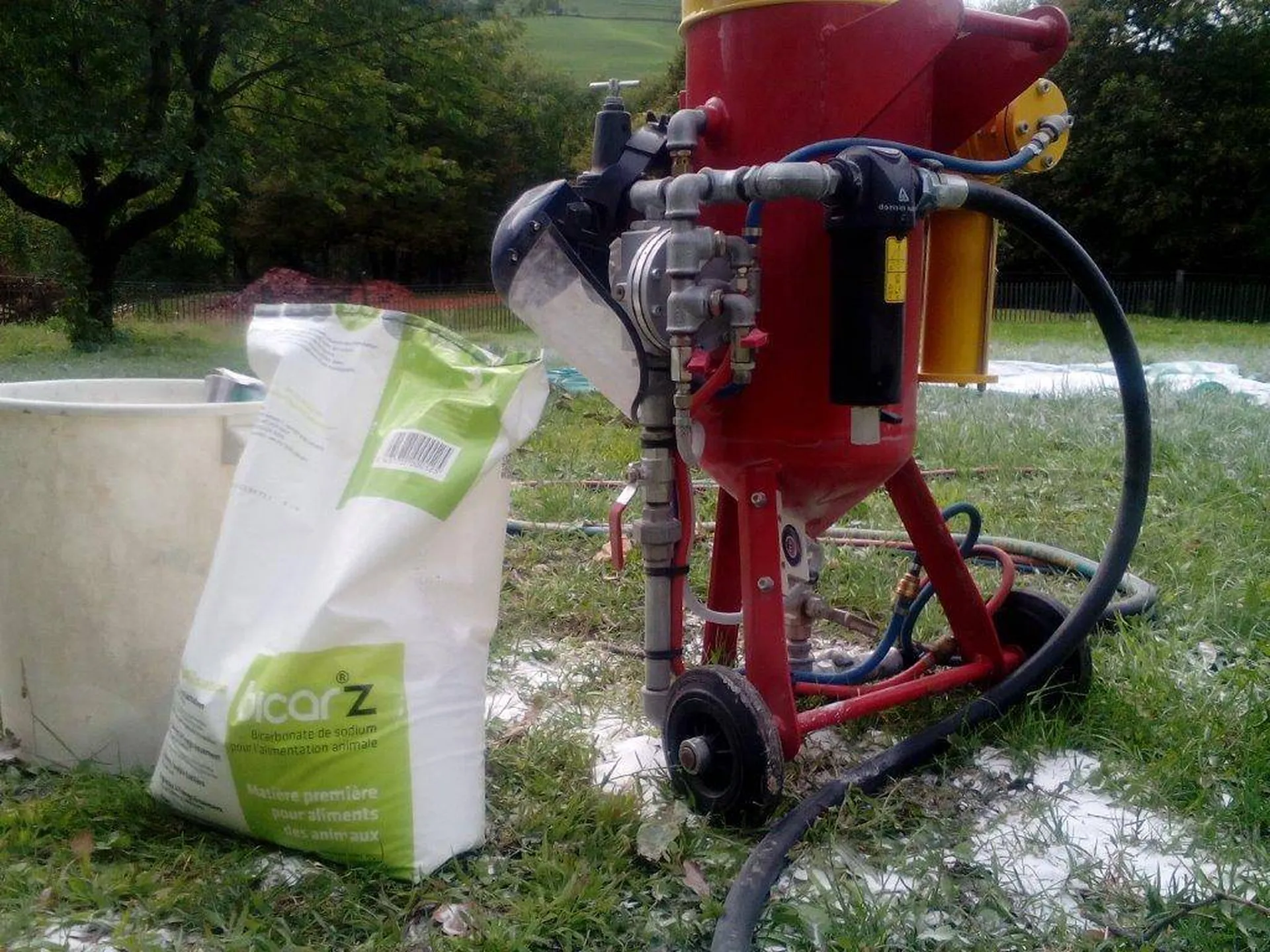 En effet « sans vibreur pneumatique » qui fera vibrer votre aérogommeuse durant sa phase de travail pour assurer un parfait écoulement régulier et convivial ;;; le décapage au bicarbonate de sodium n’est pas envisageable parce qu’il se tasse une fois mis sous pression et nos confrères concurrents qui prétendent le contraire sont des menteurs