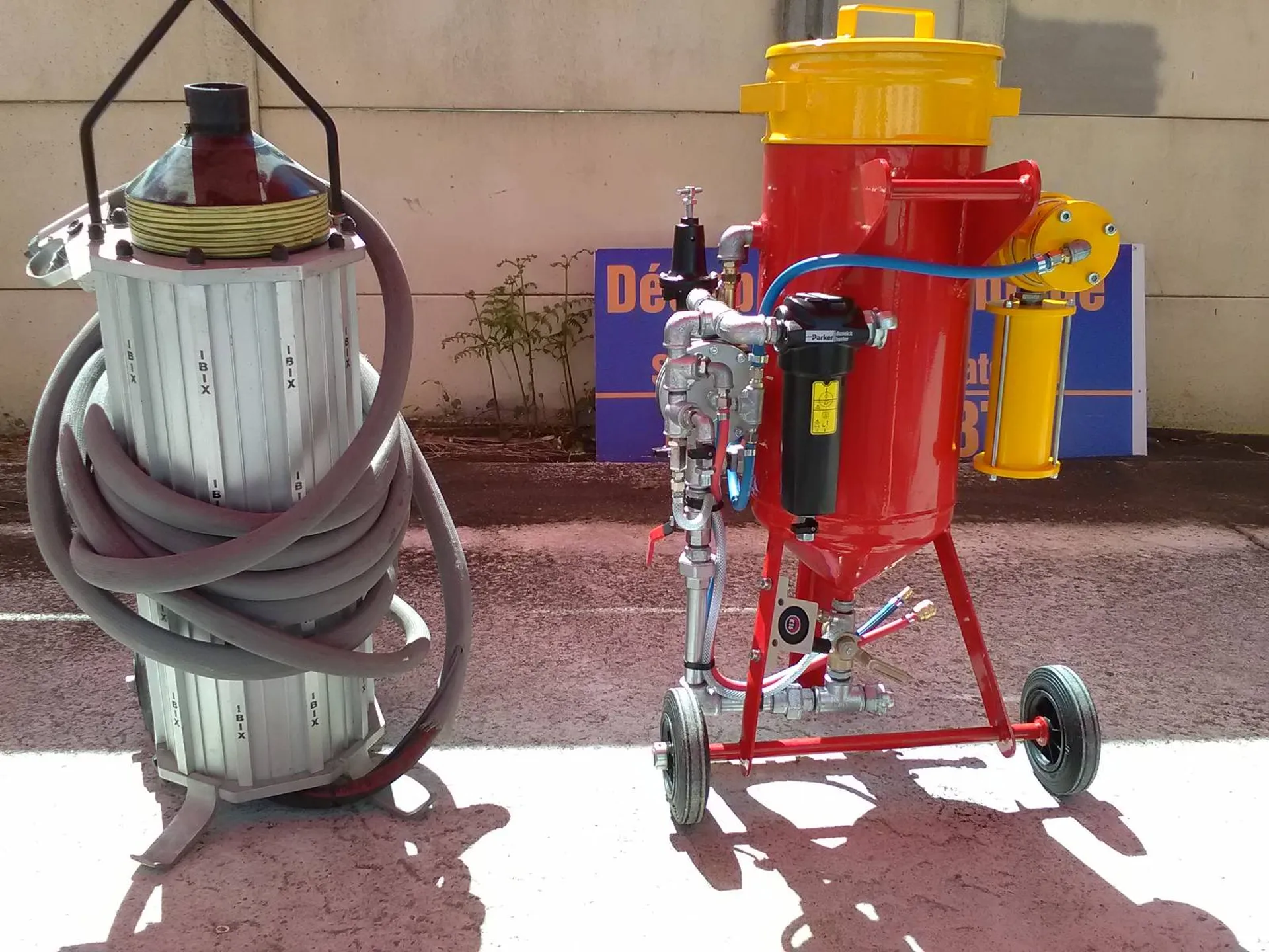 Les aérogommeuses en aluminium avec entonnoir pour les remplir, nous les appelons les machines shaker !!!