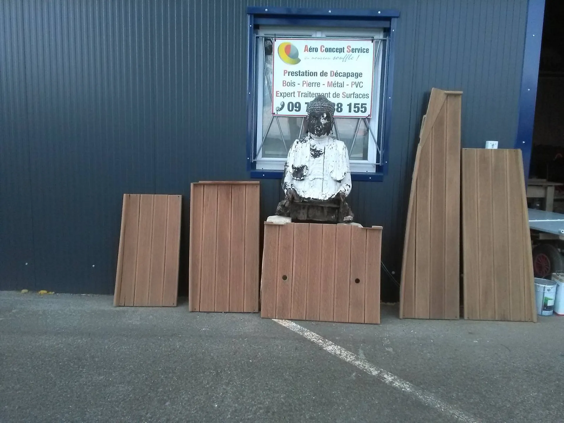 en effet avec nos matériels aérogommeuses qui disposent d'un technique avancée , nous pouvons décaper nettoyer vos boiseries sans altérer le support originel enlever "la fameuse la couleur grise" enlever une lasure, une peinture
