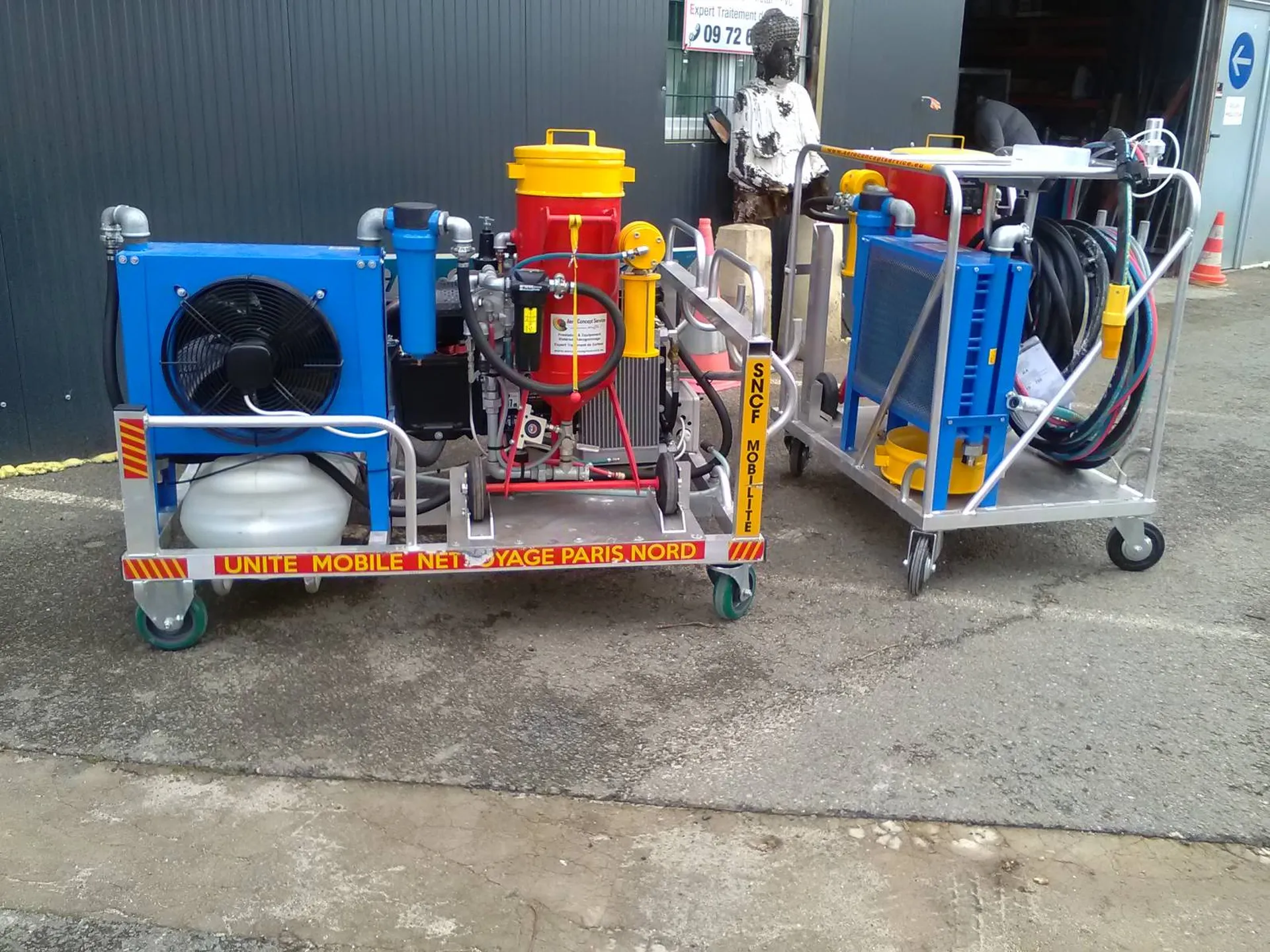 Aéro Concept Service seul fabricant seul équipementier capable de vous proposer le concept matériel libératoire appelé skid en 2020 nous avons la solution autonome avec cuve eau autonome transportable!! Prouesse et excellence avec ingrédients Haut de Gamme et des Tarifs Justes sans vous prendre pour des américains Le skid aérogommage hydrommage est le seul équipement complet préparé posé sur un chariot aluminium libératoire qui à des dimensions passe partout avec 4 roues.