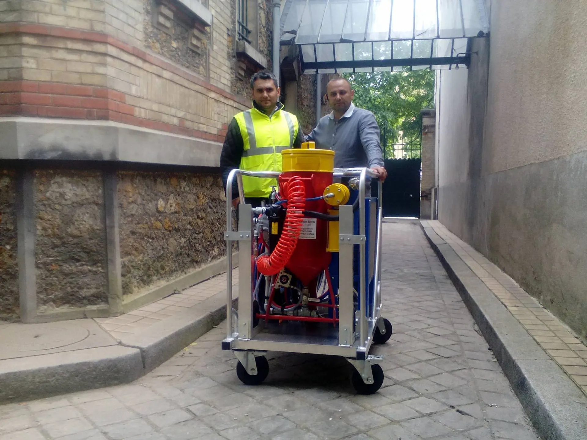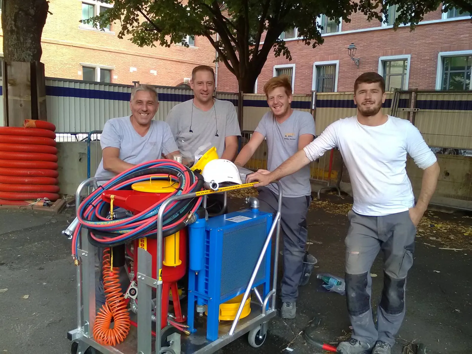tout cela a été inventé et pensé suite à nos différents chantiers de décapage réalisés et ce depuis 2014; Nos concurrents, eux, ont toujours les mêmes machines, même si la couleur de la gamme aérogommeuse change, pour tromper l'internaute, et argumentent tant bien que mal que notre skid ne peut pas rouler, sur du gazon