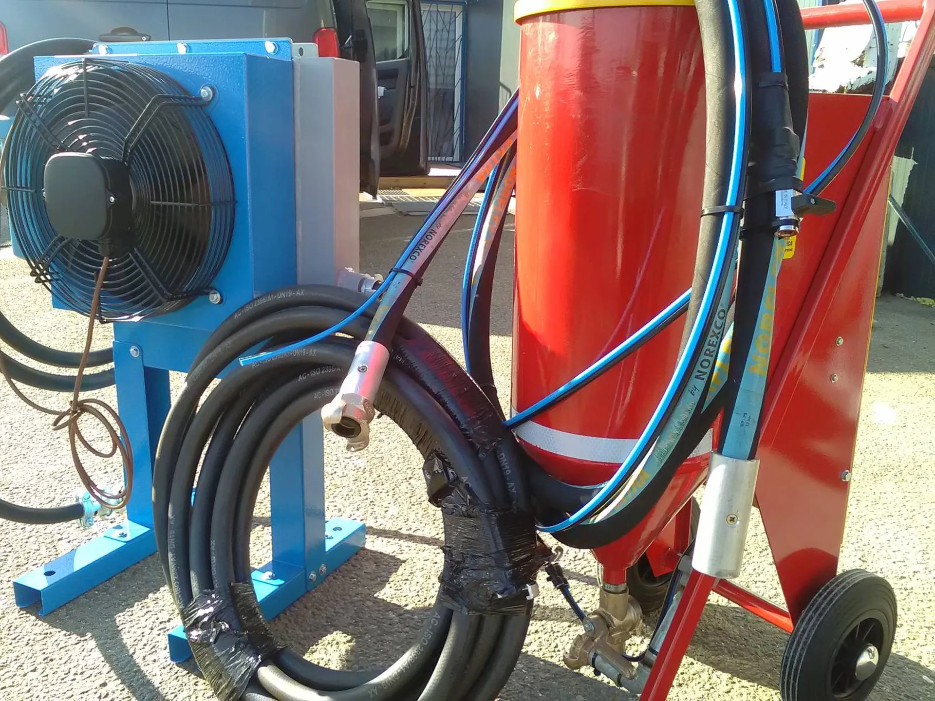 Exemple Tarif "Novgom 17 ou Decap 25 ibix 25" Aérogommeuse basique a remplir avec un entonnoir + un pistolet pour travailler "un équipement qui date des années 2000"