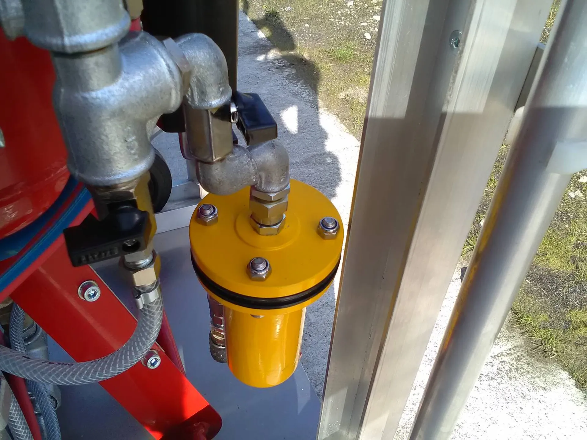 B un montage tuyauterie de sablage "souple" pour permettre de travailler dans les coins et recoins de chaque support