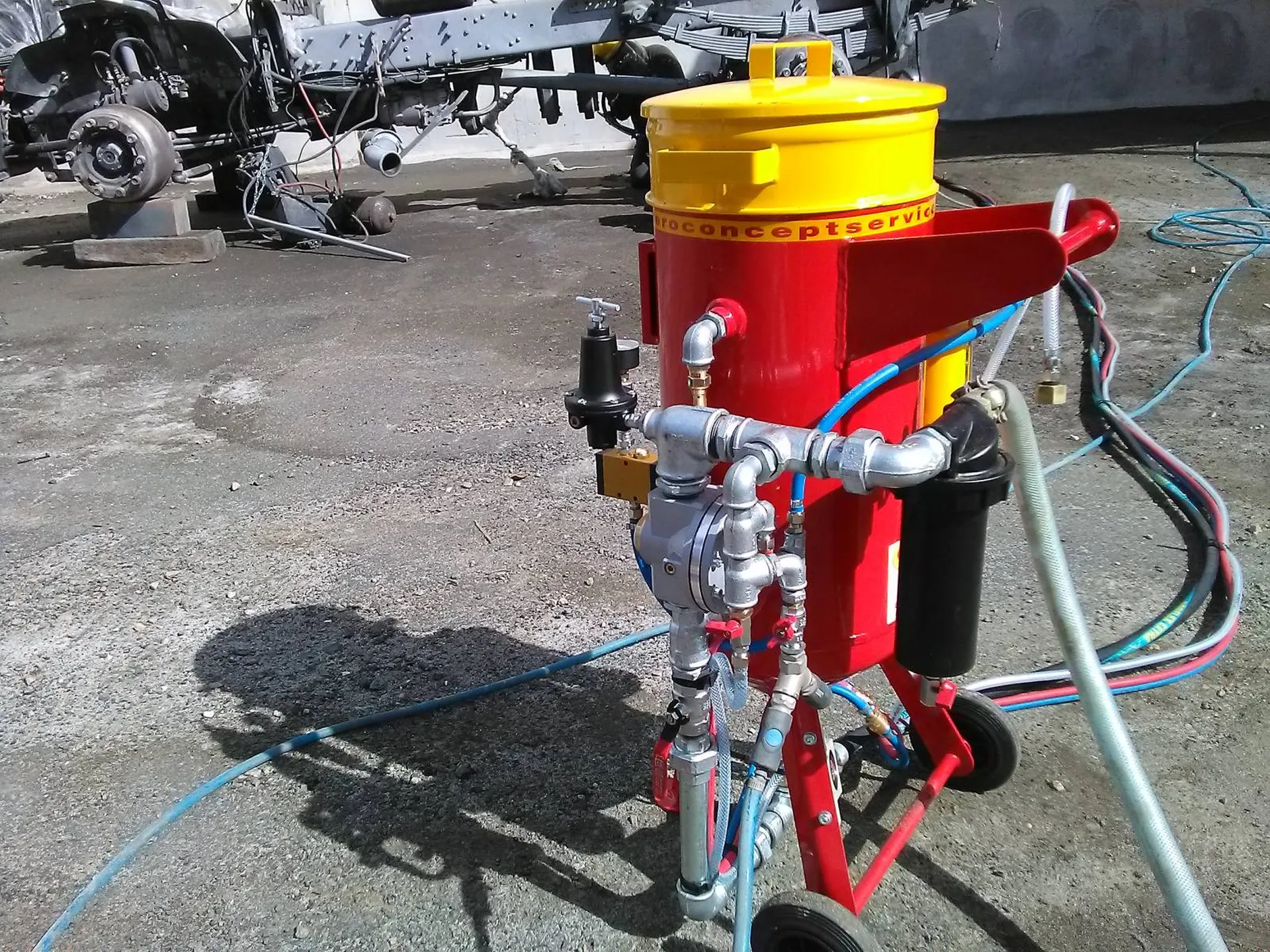 sableuses lourdes difficiles à bouger et elles sont à dépression manuelle avec des tuyaux de sablage grossier lourds, des raccords plastiques jaune d'air gros non adaptés et des consommations d'abrasif supérieurs de 30 %...