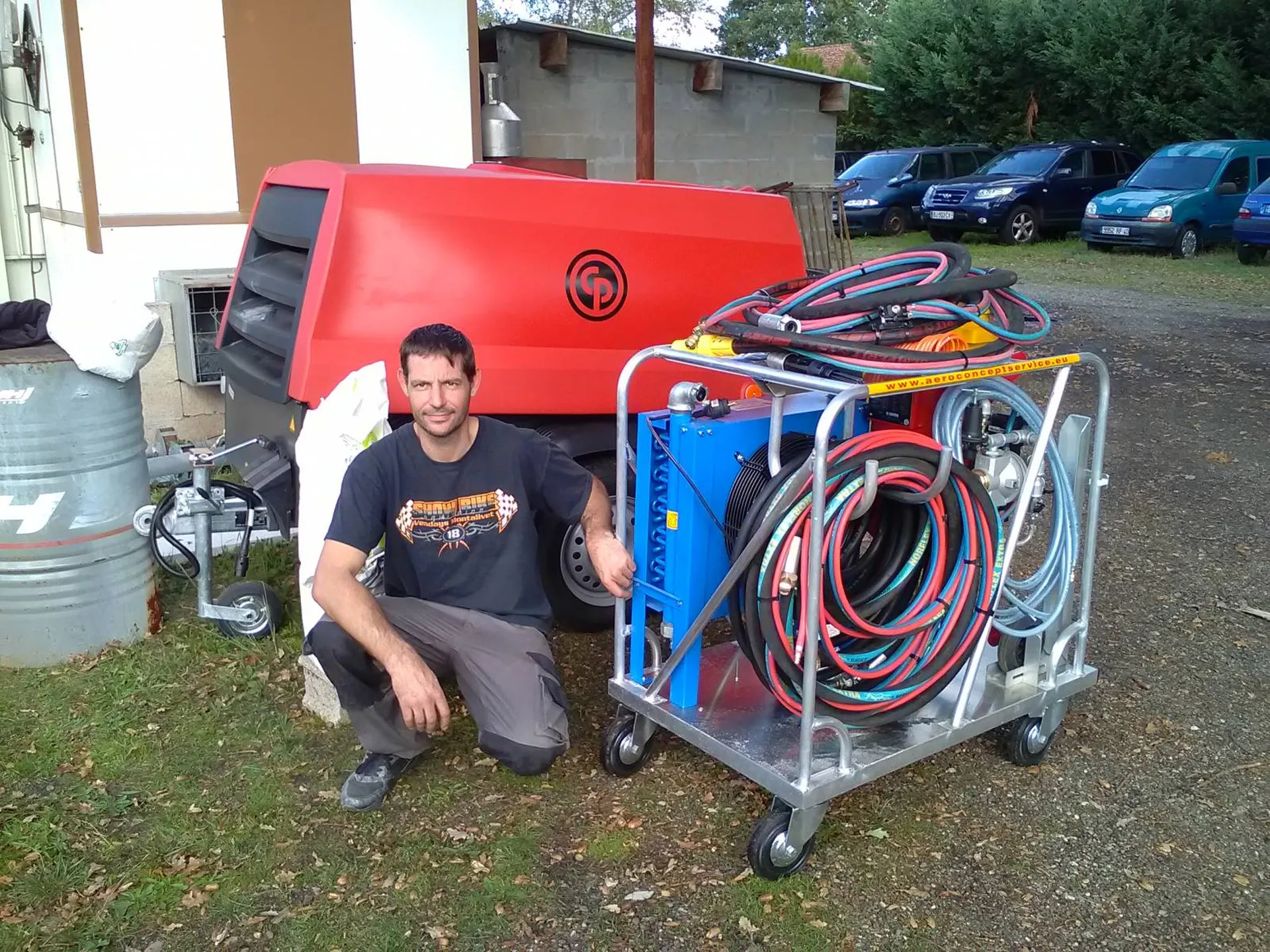 Nous voulions surtout donner, la liberté de manœuvrer et d'enlever votre aérogommeuse du chariot à tous moments si nécessaire et selon une configuration de chantier de décapage