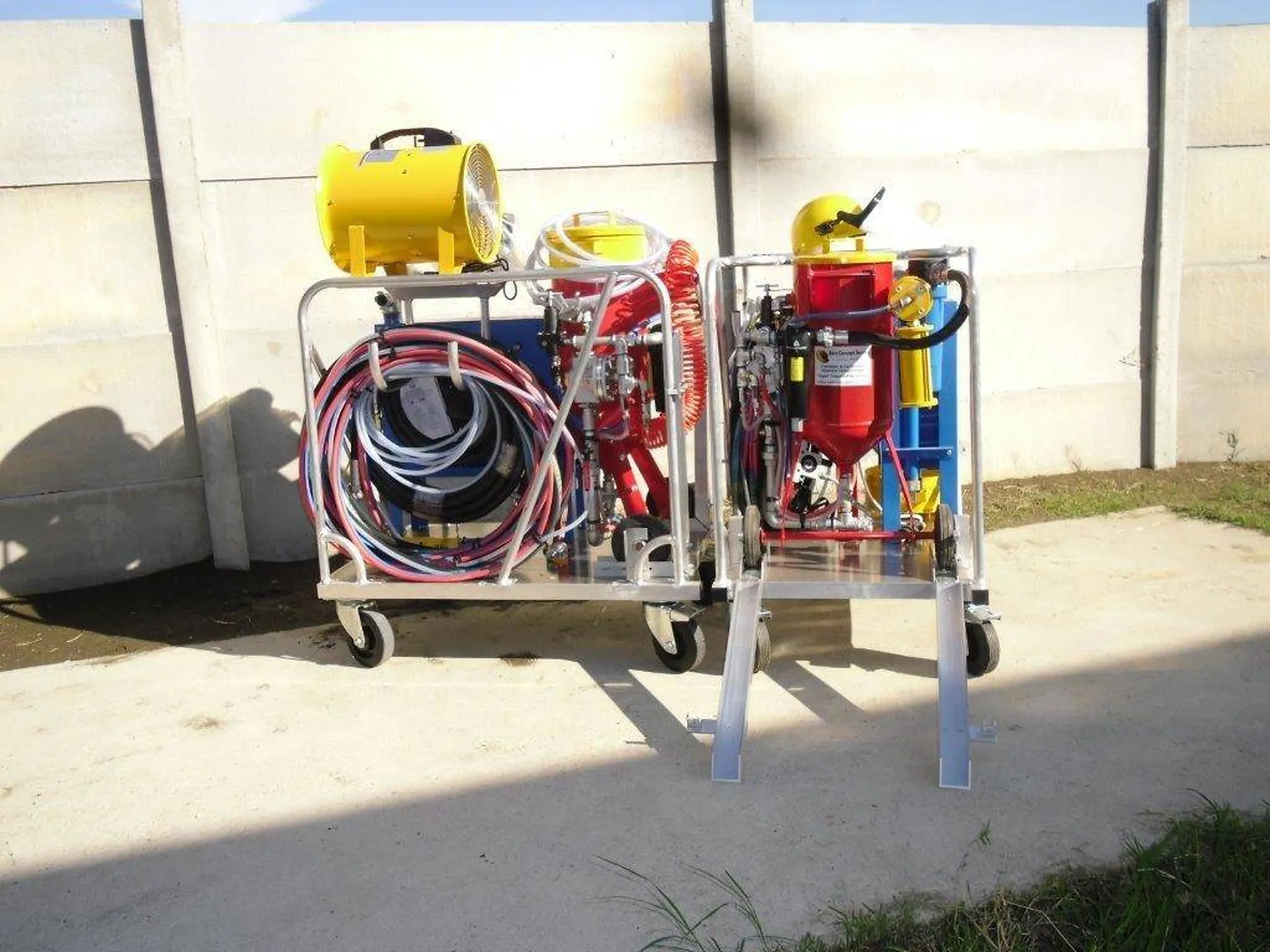 Le skid aérogommage ou hydrommage, équipement complet posé sur un chariot aluminium libératoire est un passe partout avec 4 roues directionnelles