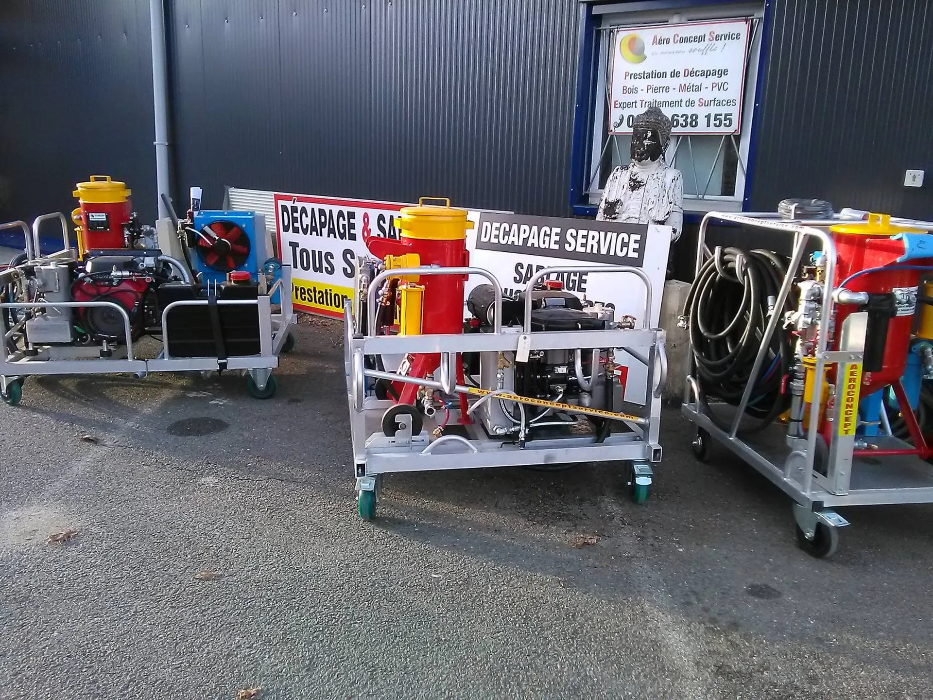 - elles sont fabriquées avec une épaisseur 4 mm acier. - vous pouvez la remplir de 8 à 55 kg à l'intérieur des cuves. - elles sont identifiables & nommées par numéro 10 12 15 17 35 60 afin de vous donner une image rapide. - plus le chiffre est gros = plus elles ont besoin d'un compresseur plus gros pour les alimenter et vous donner satisfaction sur plusieurs critères ! "en productivité + d'autonomie + de temps de travail sablage réduit". - elles sont toutes avec déclenchement automatique avec la dépression la pression, c'est vous opérateur qui décidez de lancer le décapage et de l'arrêter avec la poignée P. - elles sont montées sur roues de différents diamètres et parfois roues gonflables. - elles sont montées avec de la tuyauterie de sablage renforcée anti statique et des longueurs à partir de 4M à 25M. - nous pouvons proposer "du sur-mesure" en longueur de tuyau sablage puisque nous maîtrisons la fabrication complète de ces éléments. - une expérience de 14 ans comme prestataire de chantier sablage sera une évidence pour votre choix matériel, fabriqué pour vous rendre le meilleur avec un équipement d'aérogommage chantier dédié prouvé, polyvalent, pour tous chantiers intérieurs extérieurs. - Nous avons aussi des équipements complets posés sur un chariot alu intelligent libératoire "tout le détail dans la" rubrique " UMD/SKID