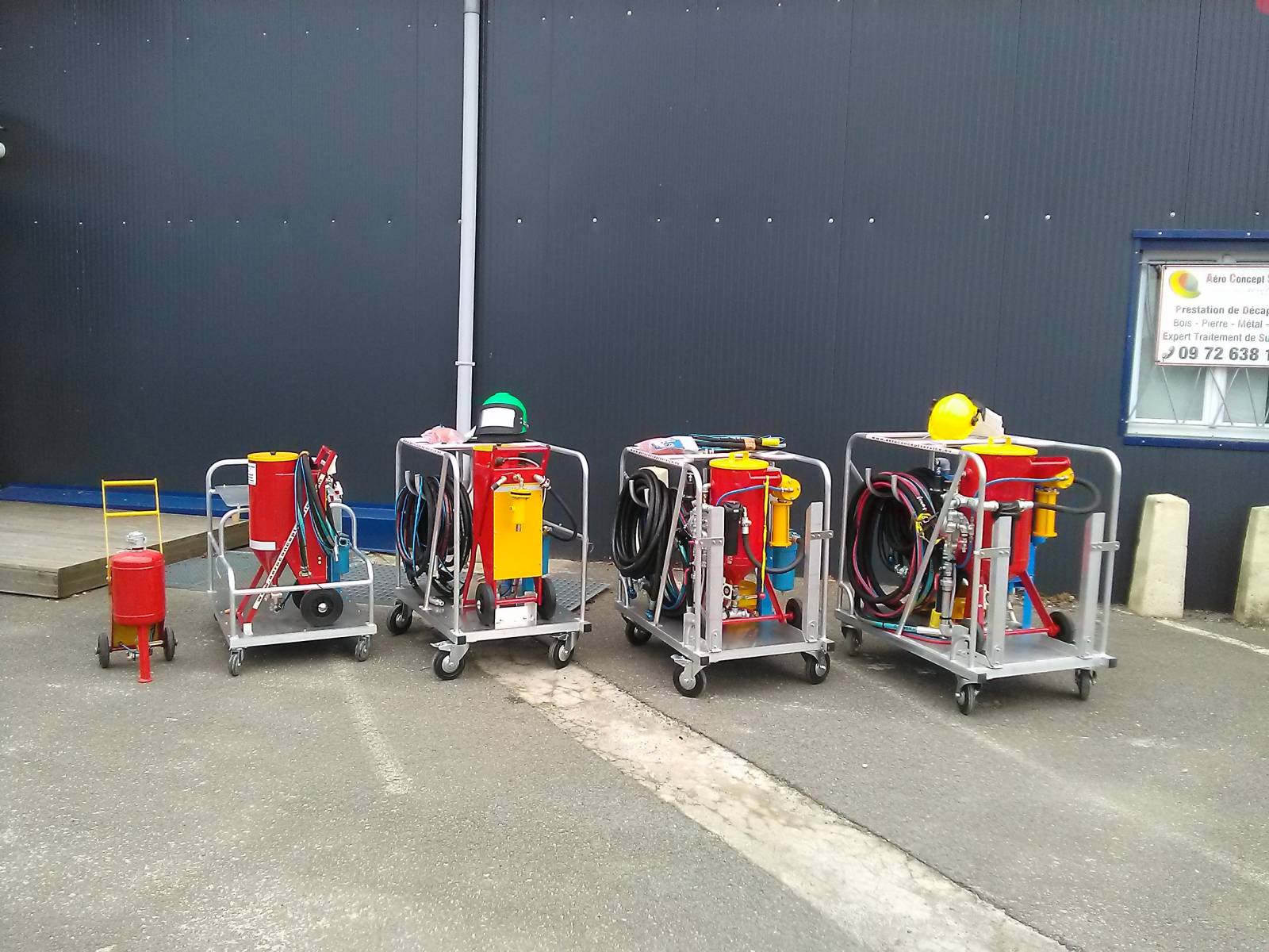 - nous avons trouvé et adapté nos aérogommeuses pour qu'elles utilisent du bicarbonate de sodium ou un média végétal en projection basse pression!!!