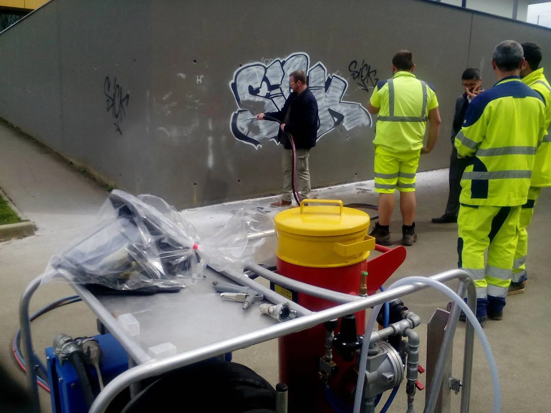 Vérifiez c’est visible « les machines qui ont des manomètres partout » pour la pression d’entrés la pression de sortie, la pression de la cuve » tout ça c’est des sableuses sans aucun atouts techniques pneumatique, or mis le fait de demander à l l’opérateur de régler le pression d'air.