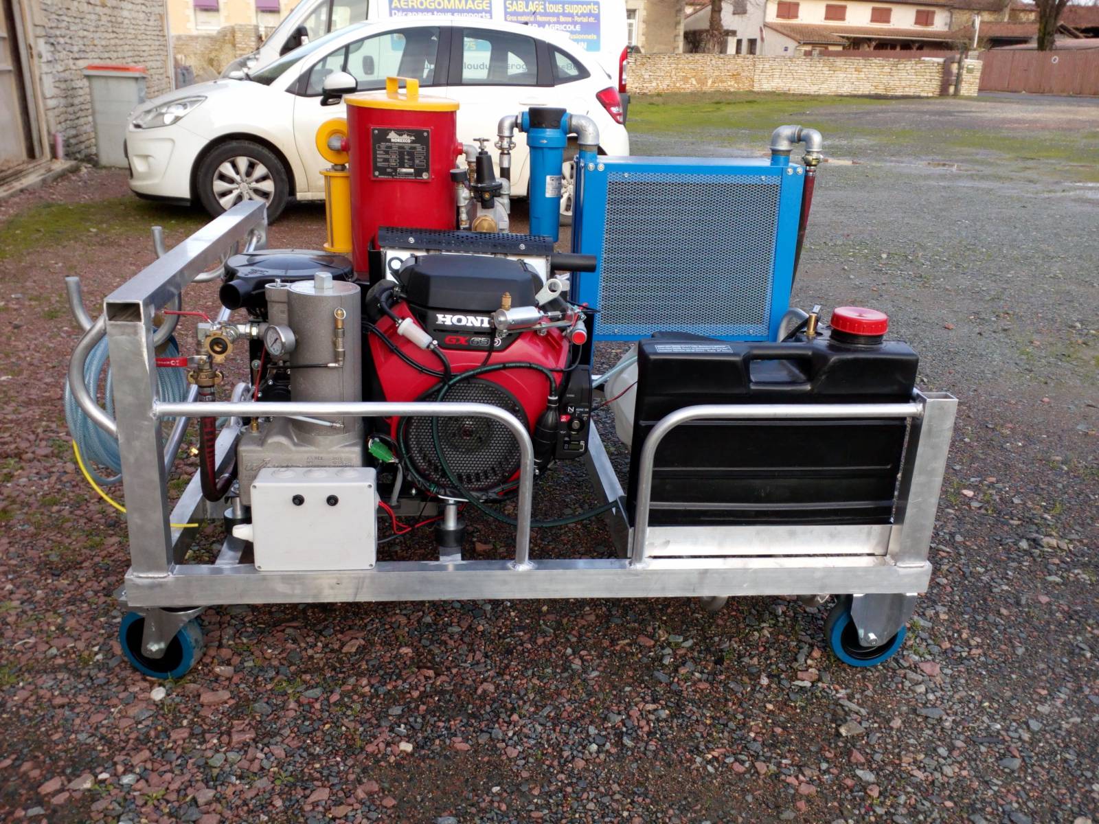 c'est une des nouveautés 2019 ! pensé pour l'hydrogommage des murs et sols ou des nettoyage mobilier urbains, le nettoyage complet urbain des tags graffiti, le décapage des édifices en pierre les murs, avec ce skid hydrogommage, aérogommage motorisé,