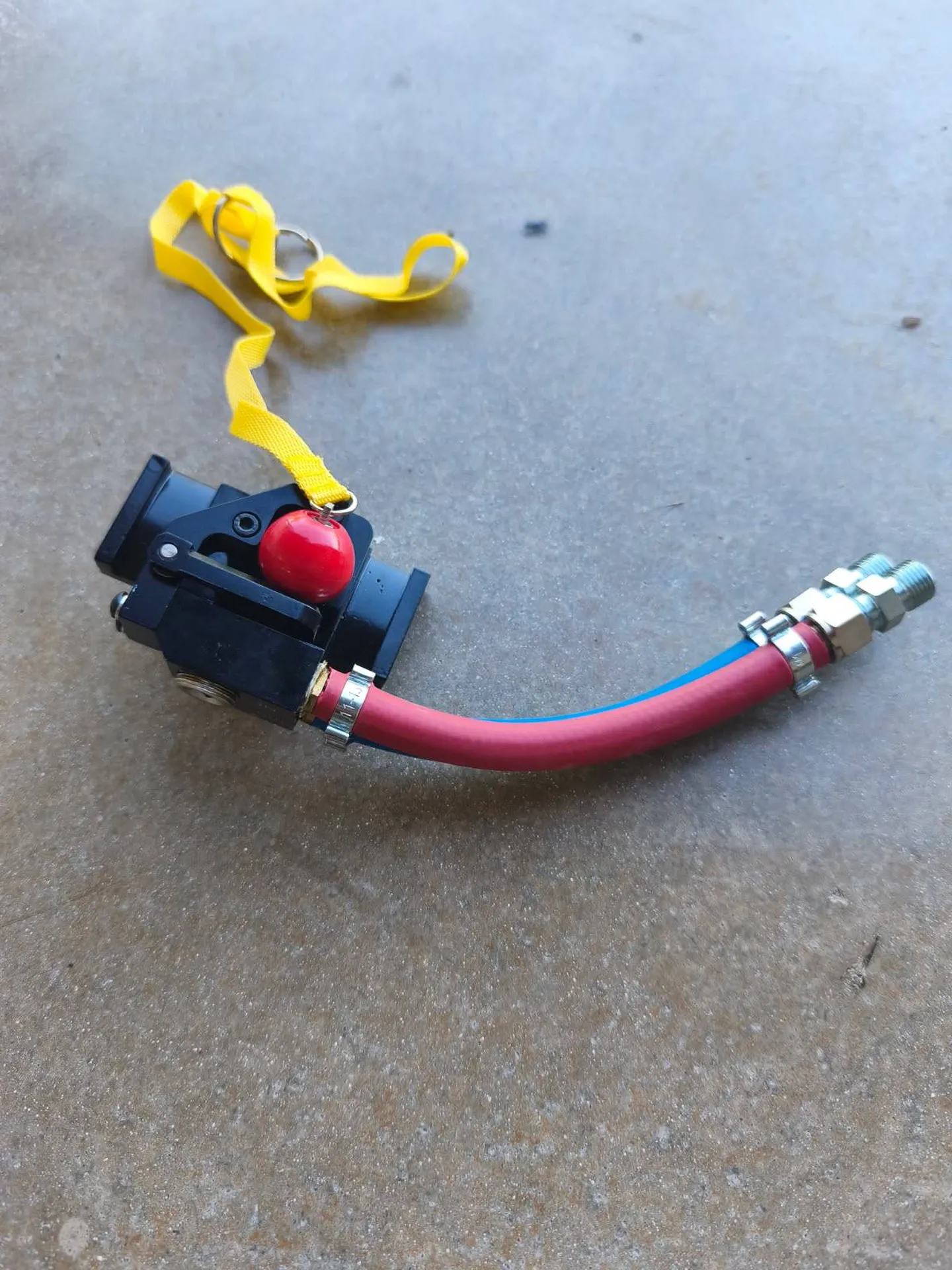 Le Start & Stop est un dispositif pneumatique de commande à distance intégré sur les aérogommeuses Aéroconcept. Il permet à l’opérateur de contrôler instantanément le démarrage et l’arrêt de la projection d’abrasif — directement depuis la poignée la lance. Plus familièrement nommée " poignée anti-fatigue", son fonctionnement est simple: la boule rouge coupe à la fois l’air comprimé et l’abrasif, permettant une coupure nette du jet sans délai.