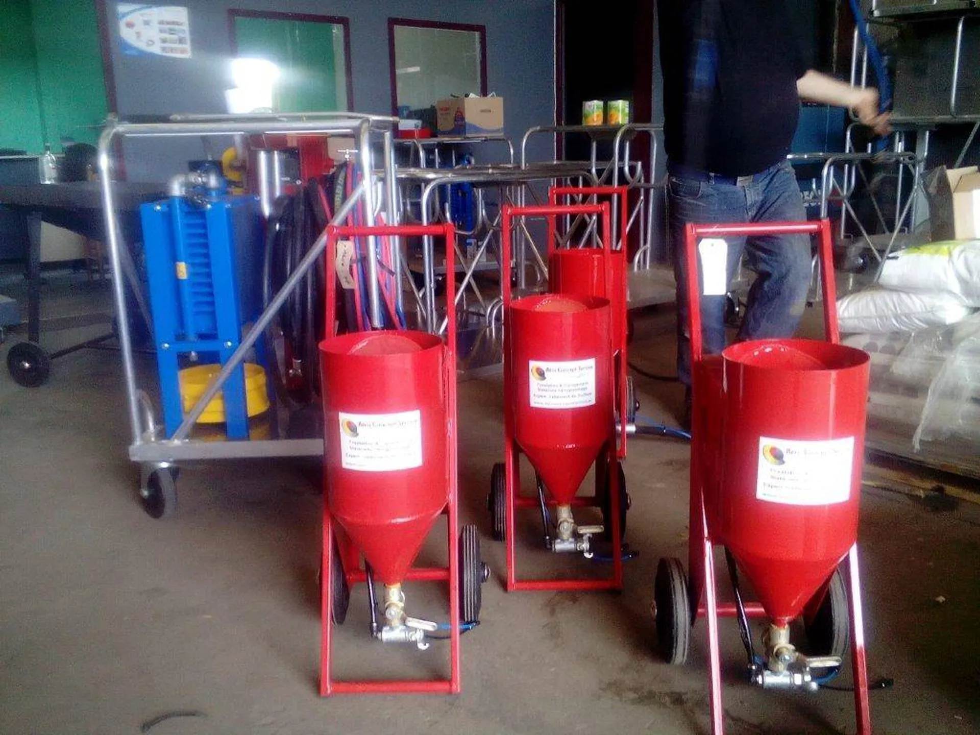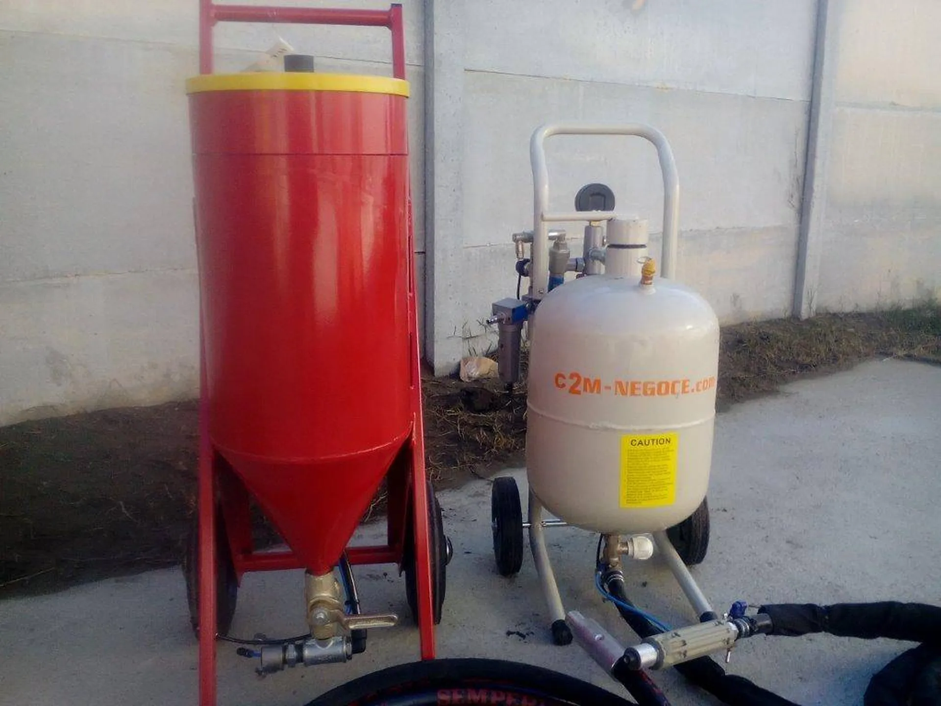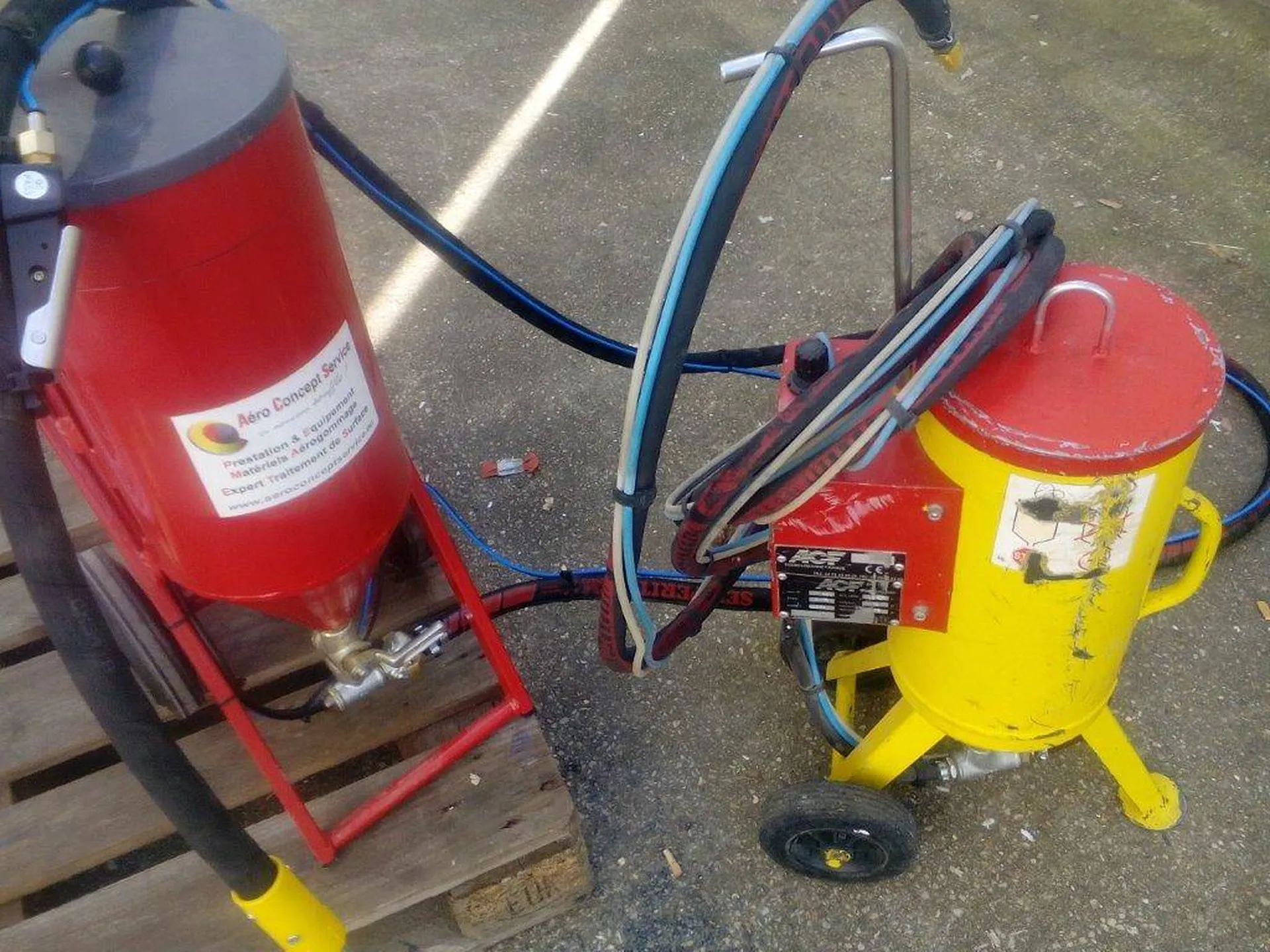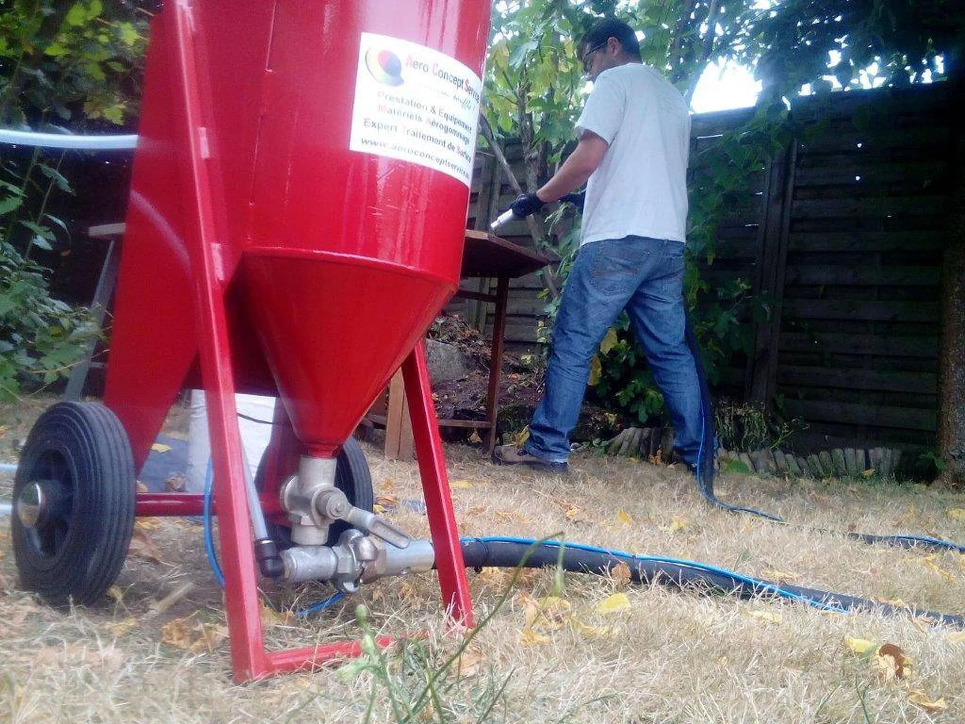 nous avons dans notre gamme de matériel aérogommage en acier 4mm d'épaisseur une véritable machine de chantier capable de tout décaper et nettoyer en basse pression tous les supports. depuis 11 ans nous avons misé sur des équipement acier plutôt que de proposer du matériel extrudé aluminium toutes nos aérogommeuses n'ont pas d'entonnoir pour les remplir n'ont pas de bouchon a fermer parce qu'elles sont a pression automatique pneumatique et elles répondent toutes aux normes européennes 97/23 CEE